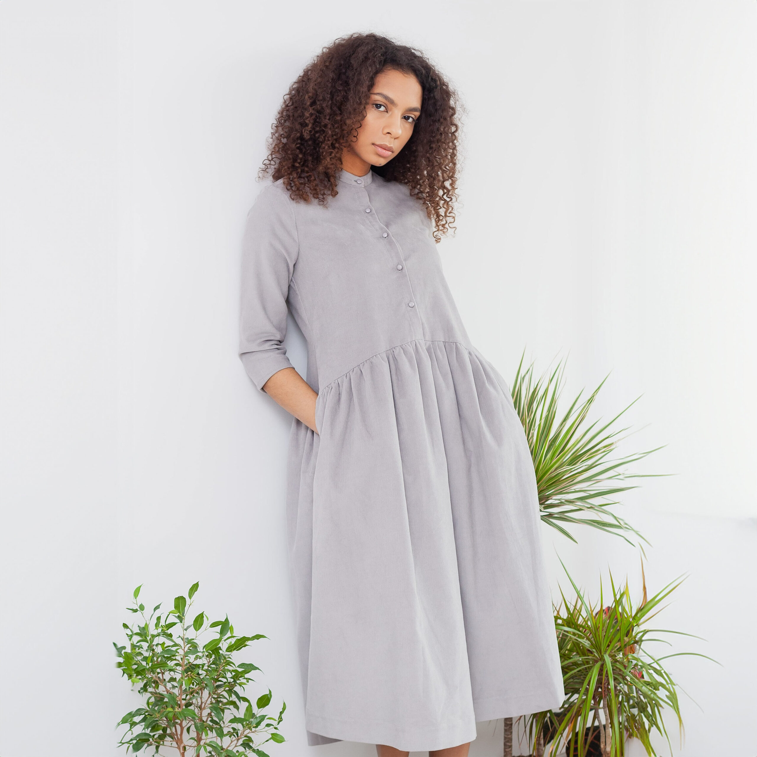 Long-Sleeve Corduroy Dress