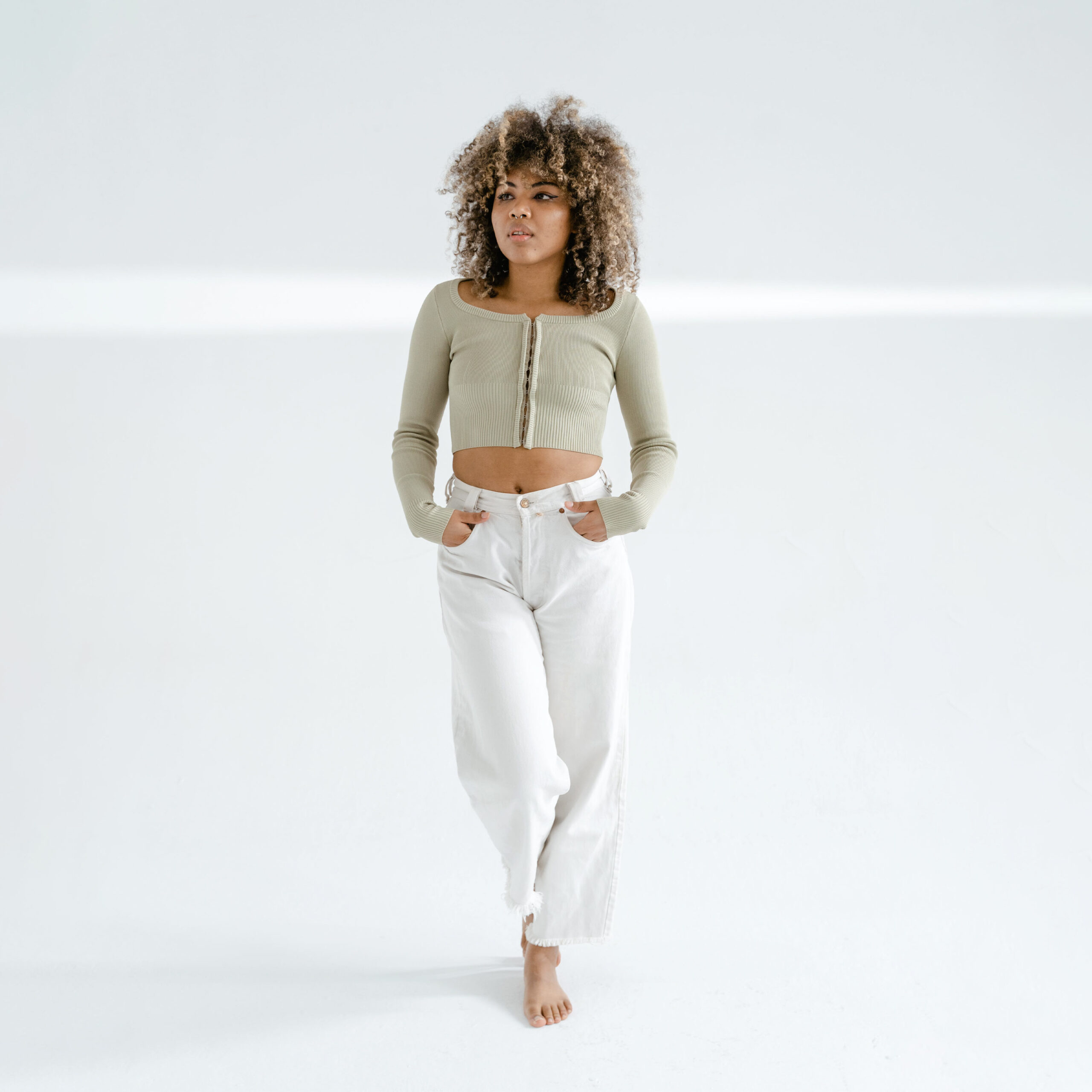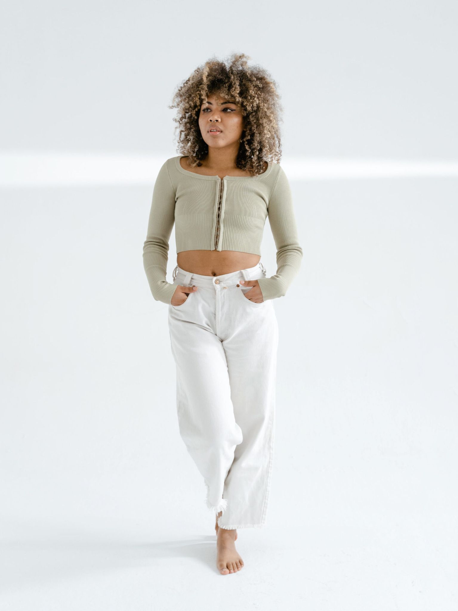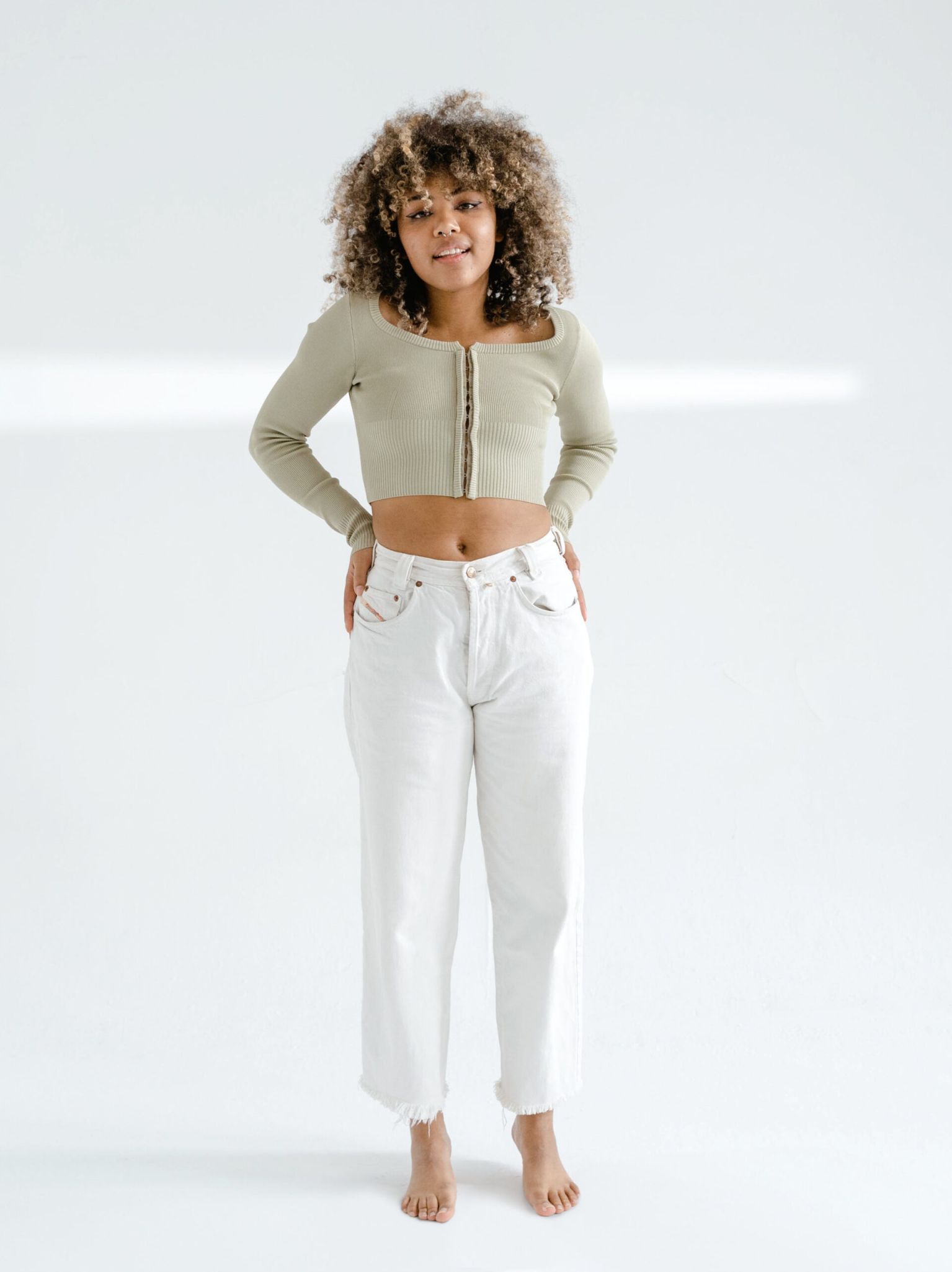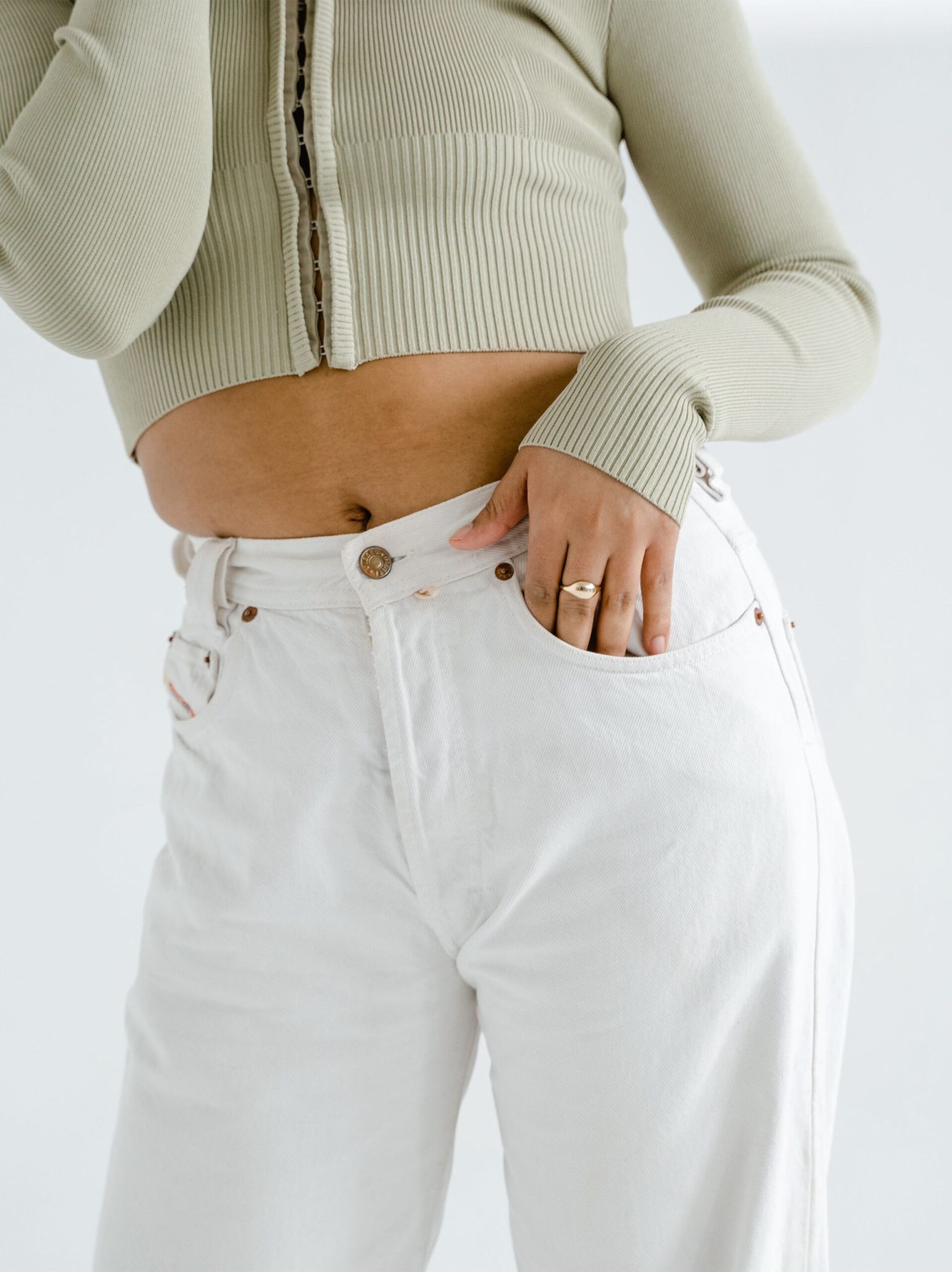Mid-Waist White Jeans